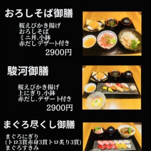駿河湾で獲れた旬の魚介を使用した新鮮なお料理や